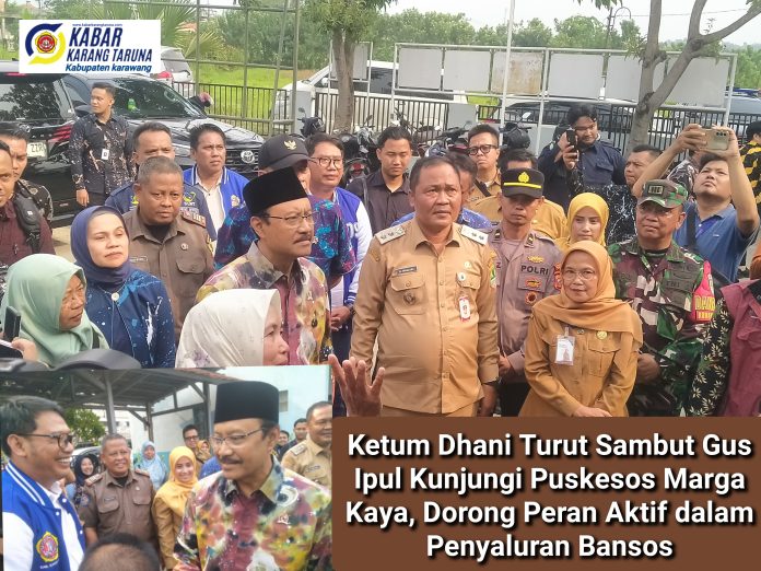 Karawang, Menteri Sosial (Mensos) Saifullah Yusuf, atau yang akrab disapa Gus Ipul, didampingi Wamensos, Agus Jabo Priyono mengunjungi Pusat Kesejahteraan Sosial (Puskesos) Desa Marga Kaya, Kecamatan Telukjambe Barat, Kabupaten Karawang. Disambut oleh Wakil Bupati Karawang H. Maslani beserta jajaran OPD terkait, Kaban Bappeda, Ridwan Salam, Kadinsos beserta jajaran, unsur TNI dan Polri, Camat Telukjambe Barat, Pemdes Margakaya serta tokoh masyarakat. Selasa, (21/10/2025). Siang