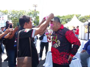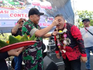 Acara di lanjut pemotongan Nasi Tumpeng Oleh Dandim 0624 yang di wakili Kapten Inf Aang dan bernyanyi bersama Selamat Ulang Tahun AIC Nusantara ke – 4.