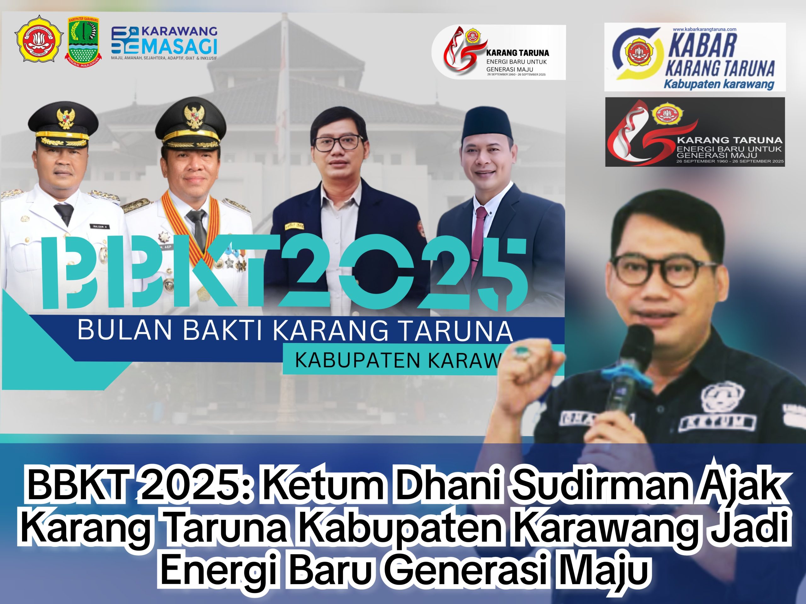 Karawang, Ketua Umum Karang Taruna Kabupaten Karawang, Dr (c) Dhani Sudirman, S.T, S.E, M.M. mengajak seluruh jajaran untuk menjadi energi baru bagi generasi maju. Dengan semangat dan komitmen yang kuat, Dhani berharap Karang Taruna dapat berperan aktif dalam membangun generasi yang lebih maju, cerdas, dan berakhlak mulia.