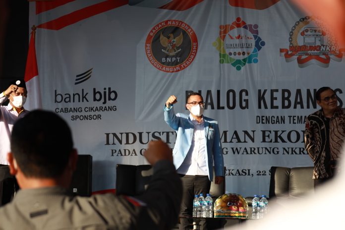 BERITASEJABAR.ID (22/09) Wakil Walikota Tanggerang Selatan Sekaligus Ketua Umum DPP Mapancas, H. Pilar Saga Ichsan menjadi pembicara dalam dialog kebangsaan yang bertema : “ Industri Aman, ekonomi Bergerak”. Kegiatan yang diselenggarakan pada rabu tanggal 22 September 2021 diselenggarakan di Amazon World kawasan Industri Jababeka Kabupaten Bekasi oleh BNPT Pusat, serta didukung oleh KADIN Indonesia. Kegiatan ini dihadiri oleh Kepala BNPT Komjen Boy Rafli Amar dan PJ Bupati Bekasi Dani Ramdan. Kegiatan ini juga sekaligus meresmikan Warung NKRI BNPT dan Penyematan Pin Duta Pancasila oleh Kepala BNPT.
