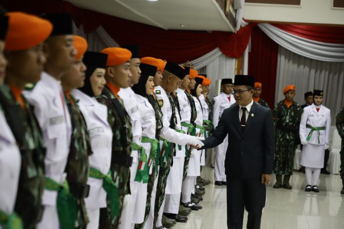 KAB.BANDUNG – BERITASEJABAR.id – Bupati Bandung Dadang Supriatna melaksanakan Pengukuhan Paskibraka (Pasukan Pengibar Bendera Pusaka) Tingkat Kabupaten Bandung tahun 2024 di Gedung Mohamad Toha Komplek Pemkab Bandung, Soreang, Kamis (15/8/2024) malam.