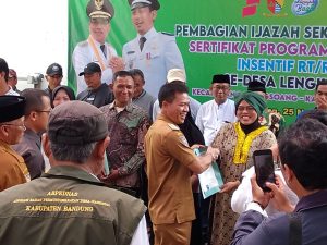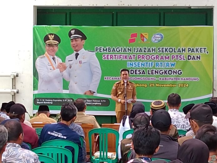 BOJONGSOANG – BERITASEJABAR.id – Bupati Bandung H.M.Dadang Supriatna S.Ip.,M.Si hadiri acara pembagian Ijazah sekolah paket B dan C dan Penyerahan Sertifikat PTSL serta pembagian insentif RT/RW se – Desa Lengkong kecamatan Bojongsoang kabupaten Bandung.Bertempat di Halaman Parkir Desa Lengkong.Senin 25/11/24.