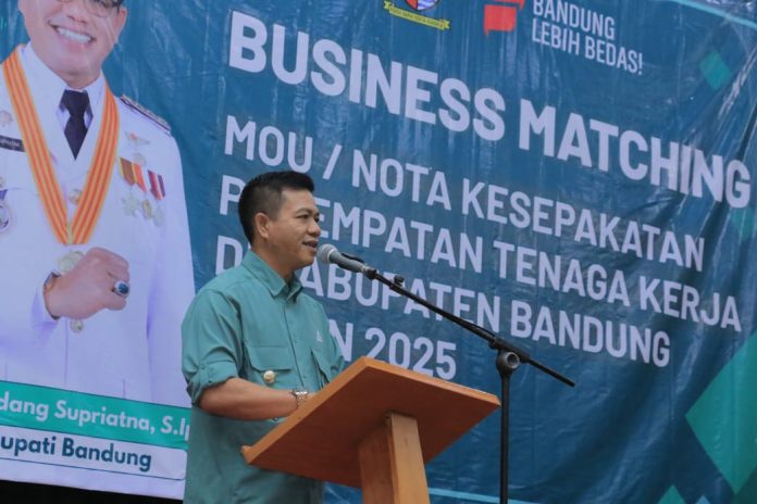 Hal itu terungkap dalam Bussines Matching Penempatan Tenaga Kerja dan Nota Kesepakatan (MoU) antara Pemkab Bandung dengan Apindo Kabupaten Bandung, di Grand Pasundan Kota Bandung, Selasa (11/2/2025).