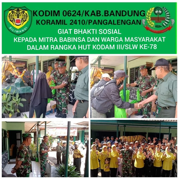 KAB.BANDUNG – BERITASEJABAR.id – Dalam rangka HUT KODAM III/SLW ke-78, Kodim 0624/Kab. Bandung, Koramil 2410/Pangalengan, melaksanakan Bakti Sosial (Baksos).