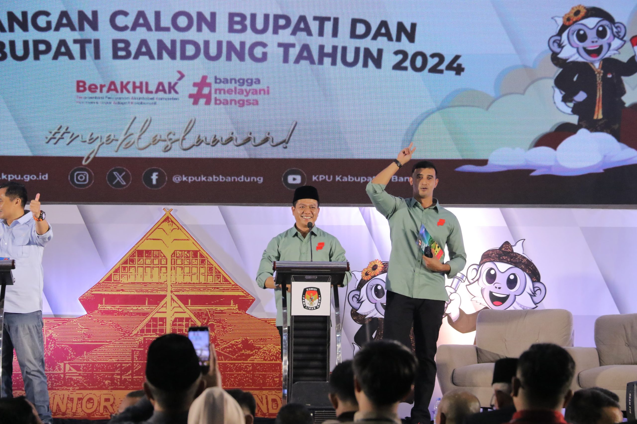 KAB.BANDUNG – BERITASEJABAR.id – Calon Bupati dan Wakil Bupati Bandung, Dr Dadang Supriatna-Ali Syakieb dinilai unggul jauh dalam debat perdana Pilkada Kabupaten Bandung 2024 yang diselenggarakan di Hotel Sutan Raja Soreang, Kabupaten Bandung, Rabu (30/10) malam.