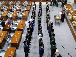 55 calon anggota legislatif (caleg) terpilih hasil pemilihan legislatif (pileg) pada 14 Februari 2024 lalu,secara resmi dilantik oleh ketua Pengadilan Negri ( PN ) Bale Bandung Rendra Yozart Darma Putra S.H.,M.H., dan pengambilan Sumpah Jabatan menjadi anggota DPRD Kabupaten Bandung periode 2024-2029, Senin 26/8/2024 di Aula Gedung Paripurna Parlemen Soreang.