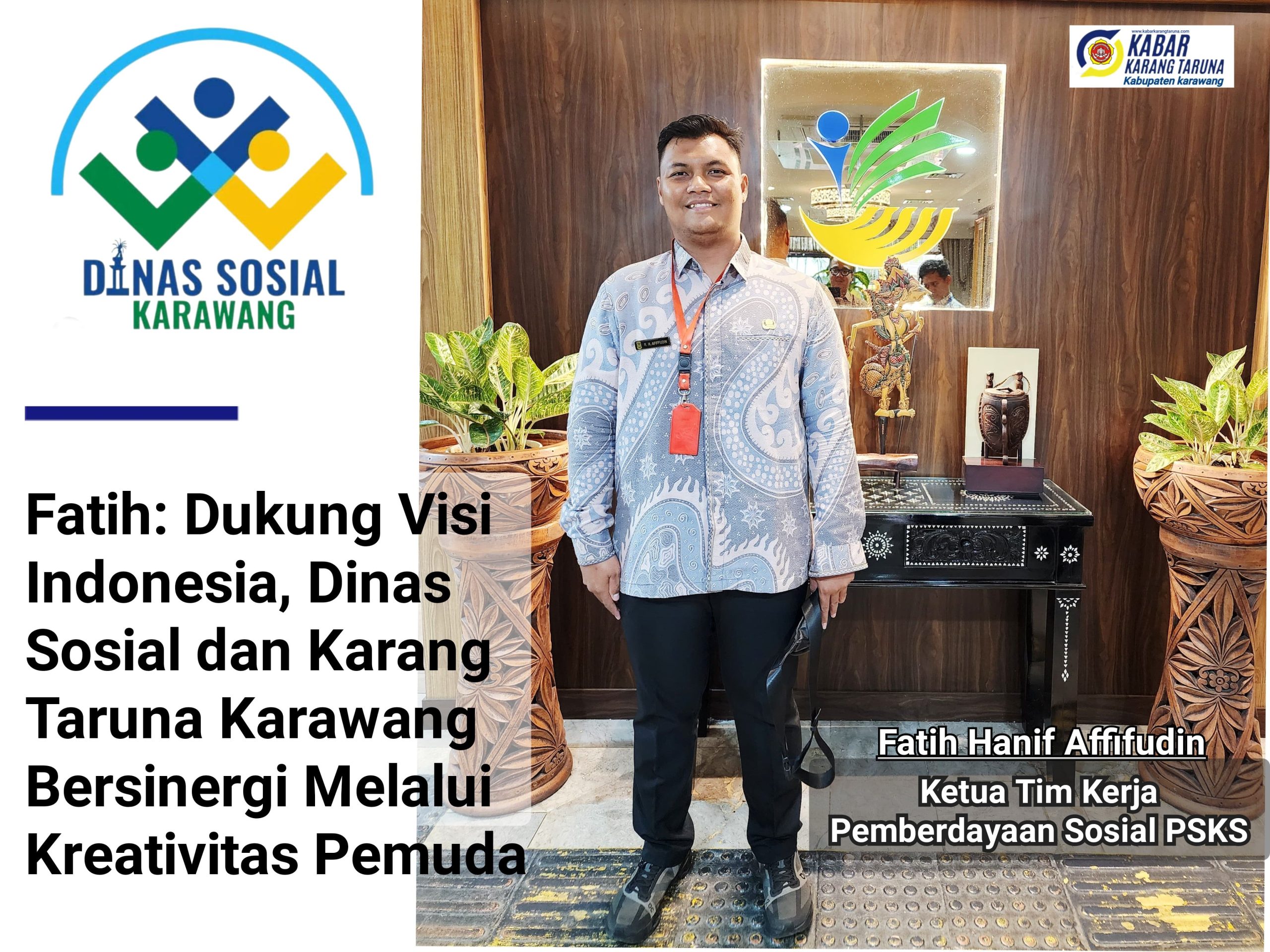Karawang, Dinas Sosial Kabupaten Karawang melalui Ketua Tim Kerja Pemberdayaan Sosial PSKS, Fatih Hanif Affifudin, memberikan dukungan penuh terhadap kreativitas pemuda dalam menciptakan program-program inovatif dan berkelanjutan di tingkat lokal.