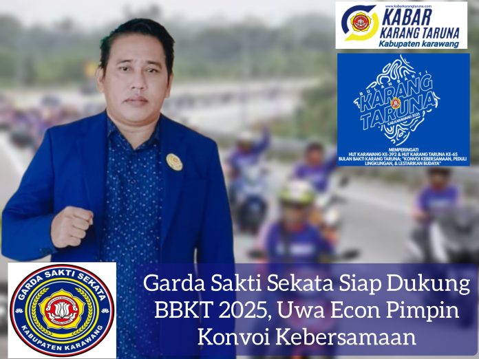 Karawang, Komandan Garda Sakti Sekata Nesan Supriyatna, yang akrab dipanggil Uwa Econ, siap memobilisasi barisan untuk mendukung Bulan Bakti Karang Taruna (BBKT) 2025. Dalam rangka memperingati Hari Ulang Tahun (HUT) Karawang ke-392 dan HUT Karang Taruna ke-65, Uwa Econ akan memimpin kegiatan Konvoi Kebersamaan dari Karawang Kota menuju Cibuaya pada 26 September 2025.