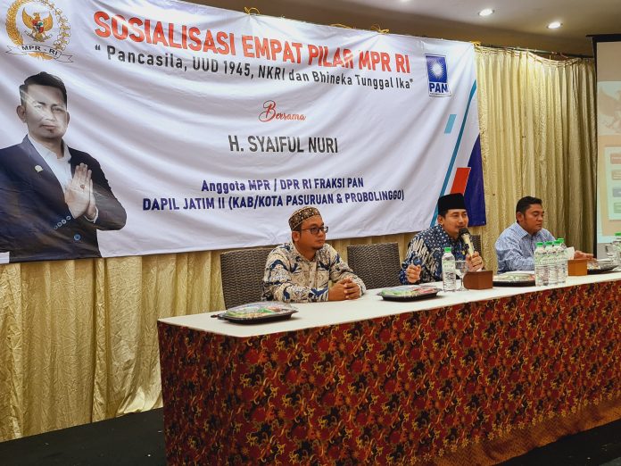 PASURUAN – Sebanyak 150 warga dari berbagai kalangan mengikuti kegiatan sosialisasi Empat Pilar MPR RI yang digelar di Rumah Makan Kurnia, Kota Pasuruan, Jawa Timur. Kegiatan ini menghadirkan H. Syaiful Nuri, anggota MPR/DPR RI Fraksi PAN dari Dapil Jawa Timur II (Kabupaten/Kota Pasuruan & Probolinggo), sebagai narasumber utama pada 24 Februari 2025.
