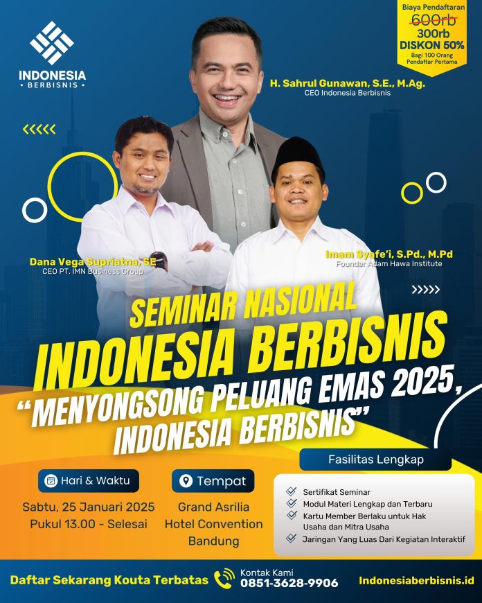 BANDUNG – BERITASEJABAR.id – Rencana Kegiatan akan digelar pada Sabtu tanggal 25 Januari 2025 di Bandung yang bertajuk Peluang Emas 2025, Indonesia Berbisnis.
