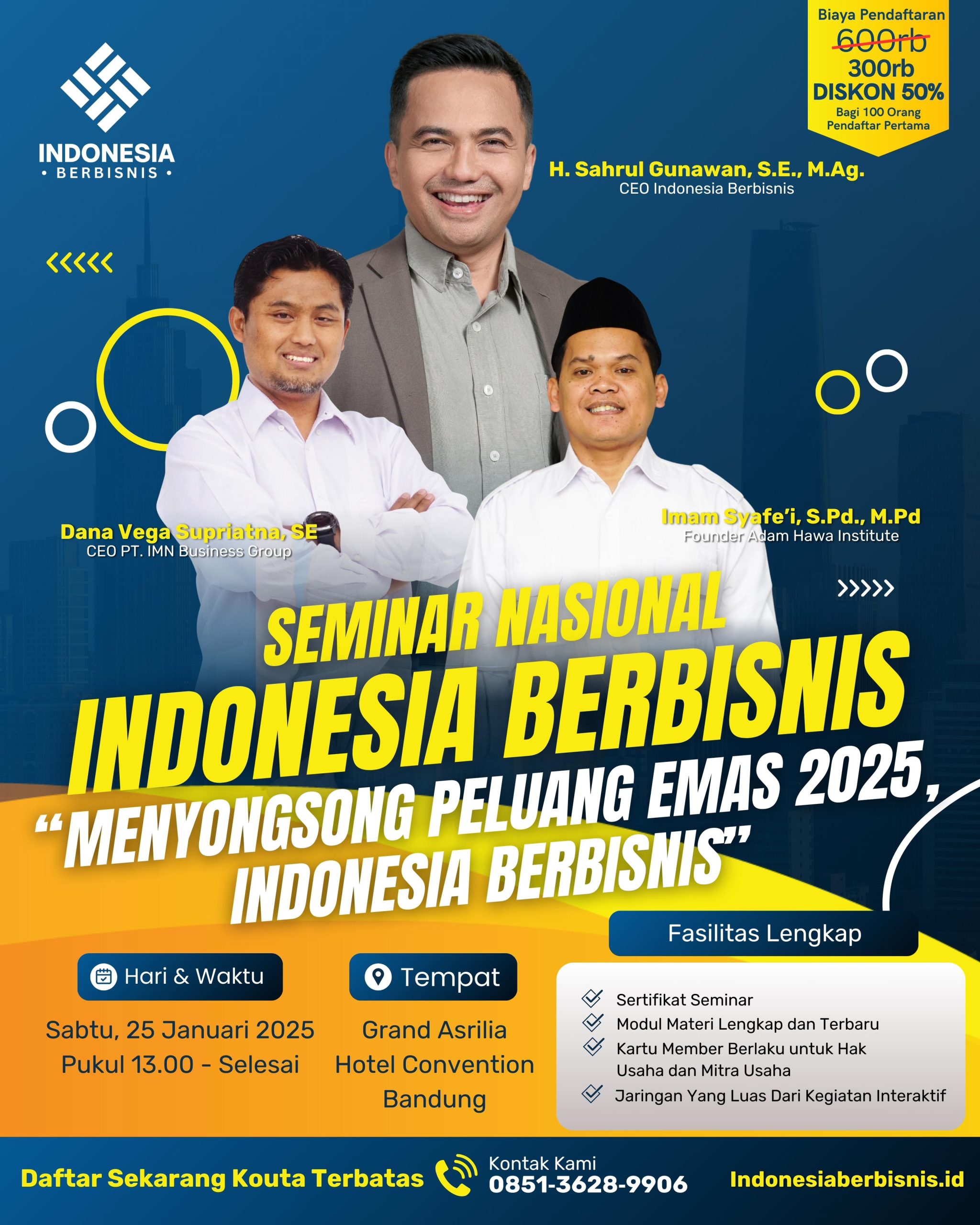 Catat waktu dan tempat kegiatan seminar, serta gabung untuk tambah berbisnis untuk menyongsong peluang emas 2025. *red