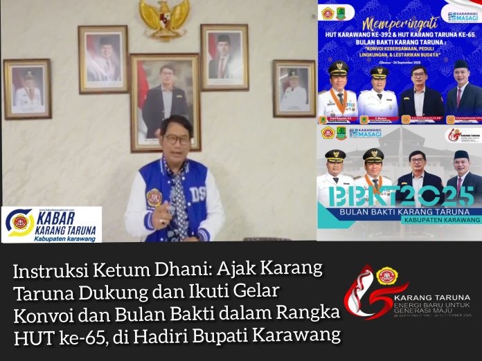 Karawang, Karang Taruna Kabupaten Karawang akan menggelar konvoi dan bulan bakti dalam rangka memperingati Hari Ulang Tahun (HUT) ke-65 pada tanggal 26 September 2025. Kegiatan ini akan dimulai dari Sekretariat Karang Taruna Kabupaten Karawang pada pukul 07.00 WIB menuju Kecamatan Cibuaya