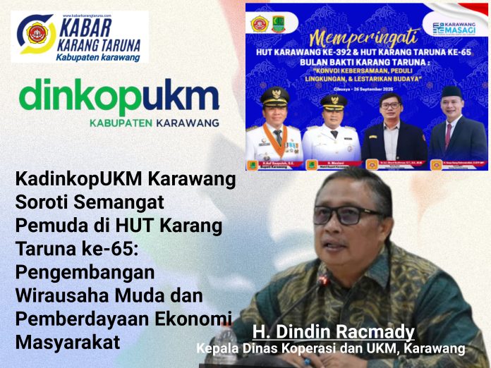 Karawang, Dalam rangka memperingati Hari Ulang Tahun (HUT) Karang Taruna ke-65, Kepala Dinas Koperasi dan UKM Kabupaten Karawang, H. Dindin Racmady, menekankan pentingnya pengembangan wirausaha muda dalam memajukan perekonomian desa.