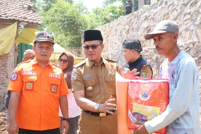Saat melaksanakan peninjauan, Bupati Bandung Dadang Supriatna didampingi Kepala Pelaksana Badan Penanggulangan Bencana Daerah (BPBD) Kabupaten Bandung Uka Suska Puji Utama dan Kepala Dinas Sosial Kabupaten Bandung A Tisna Umaran, Camat Pacet Asep Susanto dan pihak lainnya turut memberikan bantuan atau santunan kepada warga yang terdampak bencana longsor TPT tersebut.