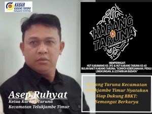 Karawang, Ketua Karang Taruna Kecamatan Telukjambe Timur, Asep Ruhyat, menyatakan siap mendukung dan ikut mensukseskan acara Bulan Bakti Karang Taruna (BBKT) yang akan dilaksanakan pada tanggal 26 September 2025 dengan rute konvoi dari Karawang Kota menuju Kecamatan Cibuaya. Sekaligus dilaksanakannya Kegiatan peduli lingkungan dan Pelestarian budaya