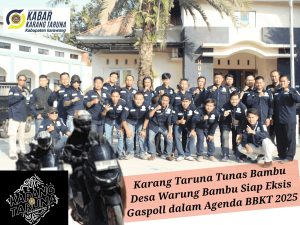 Karawang, Ketua Karang Taruna Tunas Bambu Desa Warung Bambu, Kecamatan Karawang Timur, Suryana, menyatakan siap berpartisipasi dalam agenda Bulan Bakti Karang Taruna (BBKT) 2025 yang akan dilaksanakan pada tanggal 26 September 2025 dengan rangkaian acara yang meliputi: Konvoi kebersamaan dari Karawang Kota menuju Kecamatan Cibuaya, Kegiatan peduli lingkungan dan Pelestarian budaya.