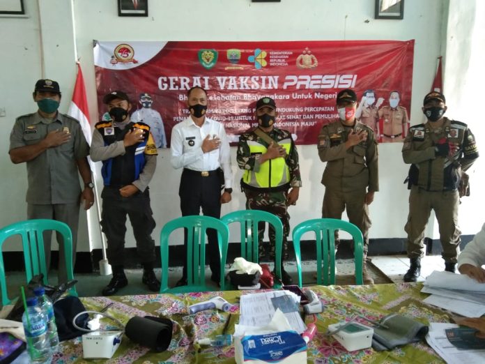 Turut hadir dalam Pelaksanaan Vaksinsai Kepala Desa Sundamekar Letkol (Purn) Imam Mulyono, Bhabinkamtibmas Dari Polsek Cisitu