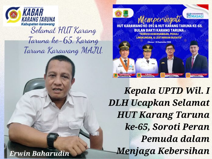 Karawang, Dalam rangka memperingati Hari Ulang Tahun (HUT) Karang Taruna ke-65, Kepala UPTD Wilayah I Dinas Lingkungan Hidup (DLH), Erwin Baharudin, mengucapkan selamat kepada seluruh anggota Karang Taruna.