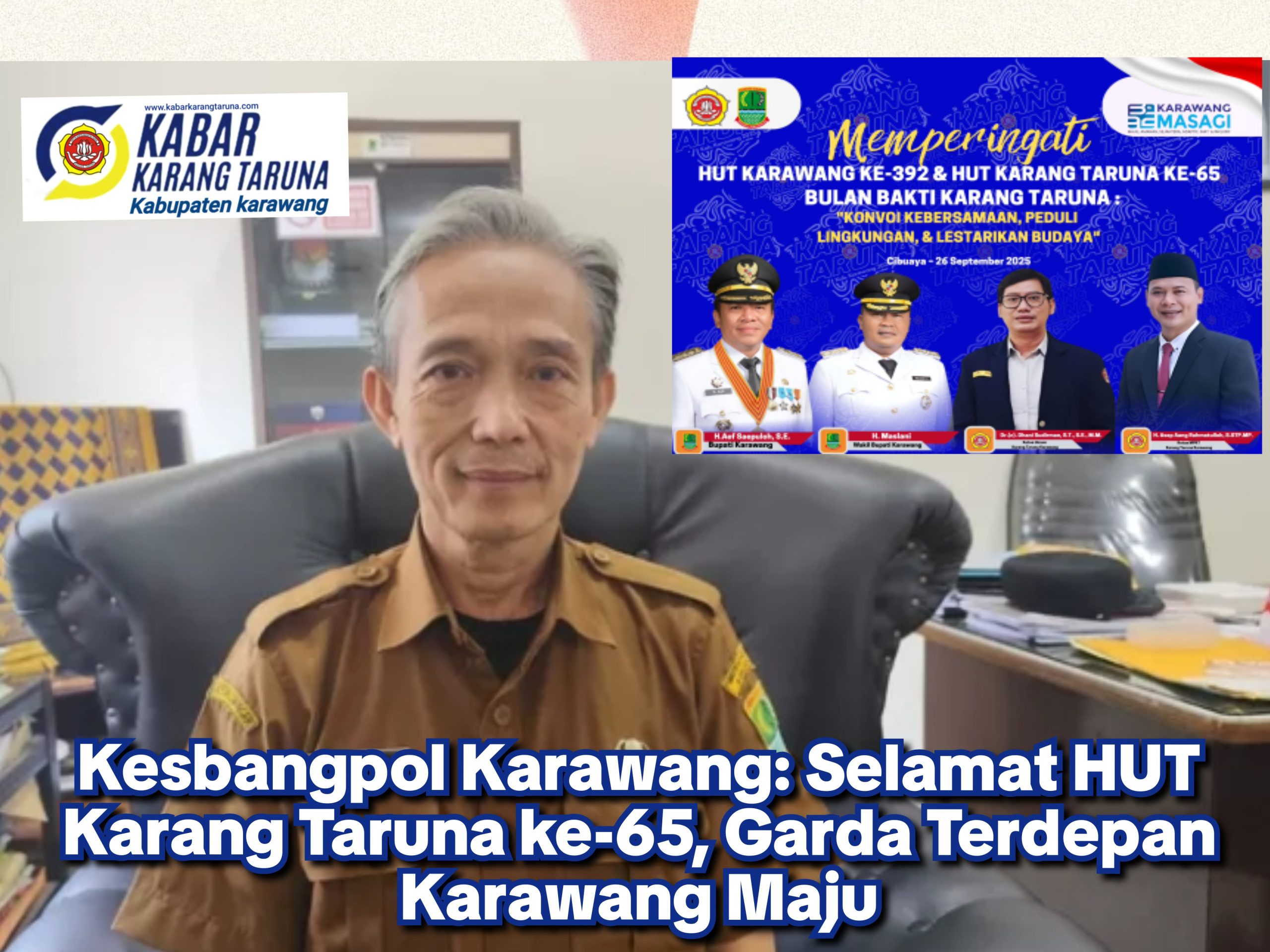 Karawang, Dalam rangka memperingati Hari Ulang Tahun (HUT) Karang Taruna ke-65, kepala Kesbangpol Karawang, Drs.Mahpudin M.Si, mengucapkan selamat kepada seluruh anggota Karang Taruna di Kabupaten Karawang.