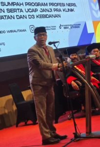 Kepada Pimpinan Komisi D DPRD kabupaten Bandung,Perwakilan Lembaga Layanan Pendidikan Tinggi Wilayah 4 Jabar Banten,Para kepala Rumah Sakit dan Puskesmas se – kabupaten Bandung,juga Perwakilan dari Organisasi Profesi PPNI Wilayah Jawa Barat,PB IBI kabupaten Bandung dan juga kepada para Panitia yang selama ini bekerja keras demi terlaksananya acara ini. Wisuda dan Sumpah janji Pra Klinik STIKINDO Wirautama kabupaten Bandung,pada tahun 2025 merupakan Wisuda angkatan yang ke – 23 di Sekolah Tinggi Kesehatan Indonesia Wirautama.” Tutur Asep Ikhsan