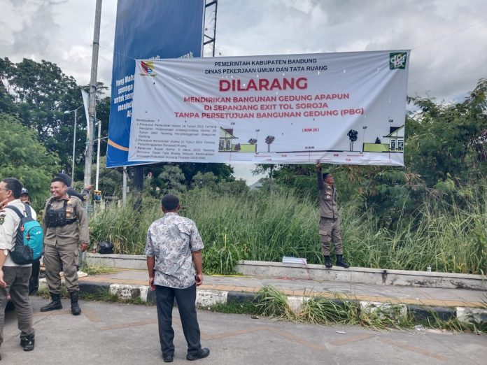 KAB.BANDUNG – BERITASEJABAR.id – Pemerintah Kabupaten (Pemkab) Bandung melalui Dinas Pekerjaan Umum dan Tata Ruang (PUTR) mengeluarkan larangan mendirikan bangunan di sepanjang Exit Tol Soreang tanpa izin.