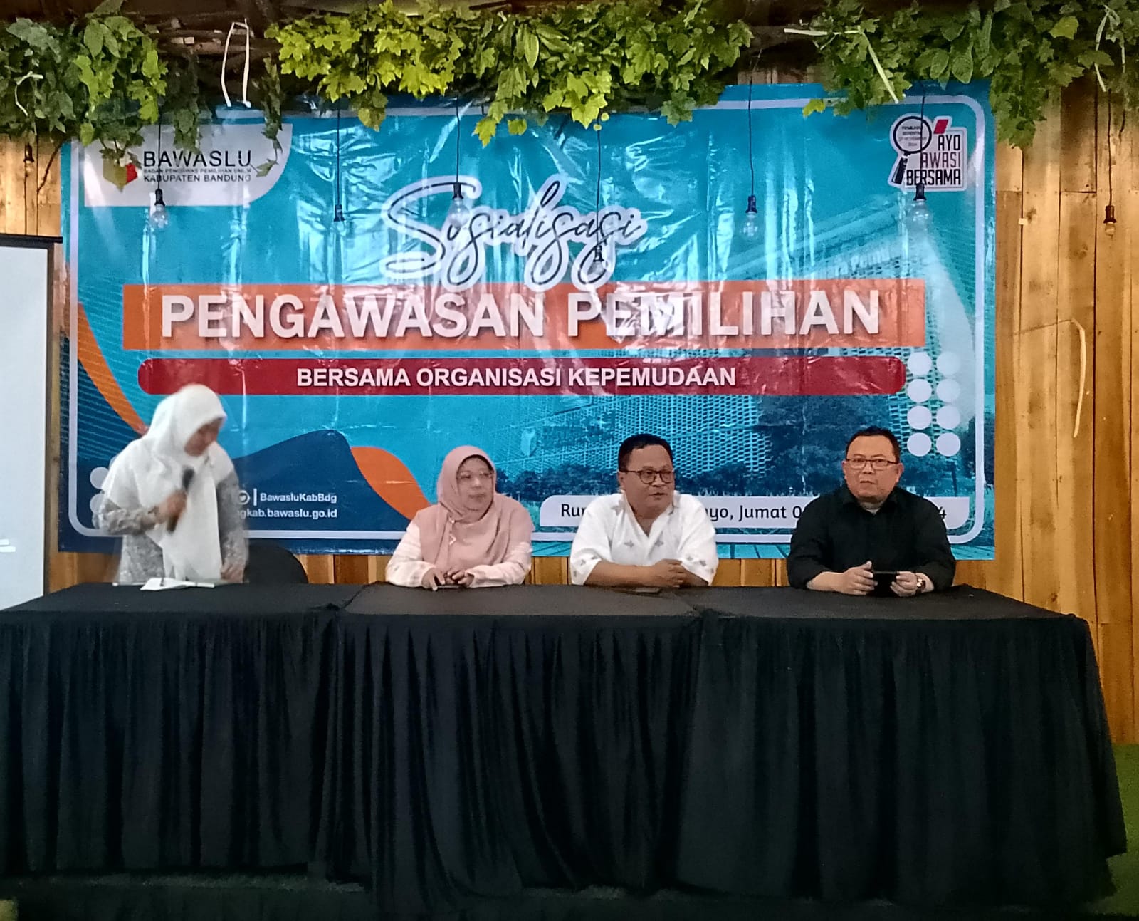 Pada masa menghadapi Pilkada 2024 dalam pemilihan Gubernur dan Wakil Gubernur juga Bupati dan Wakil Bupati,ketua Bawaslu kabupaten Bandung Kahpiana,perlunya dan pentingnya pengawasan dalam pelaksanaan Pilkada 2024,Bawaslu tekankan lakukan pengawasan dalam memilih para Calon,agar kita bisa melahirkan pemimpin yang baik,jujur,amanah dan bisa memimpin masyarakat,dan kami juga perlu parsitipatif kepemudaan juga para mahasiswa untuk ikut andil dalam mensukseskan Pilkada Serentak yang akan di laksanakan pada tanggal 27 Nopember 2024 mendatang.” Papar Kahpiana