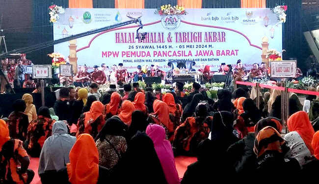 BERITASEJABAR.id – Pasca perayaan Idulfitri 1445 H Majelis Pimpinan Wilayah (MPW) Pemuda Pancasila (PP) Jawa Barat menggelar Halal Bihalal di Gor Saparua, Jalan Banda Nomor 28 Citarum, Kecamatan Bandung Wetan, Kota Bandung, Minggu (5/5/2024).