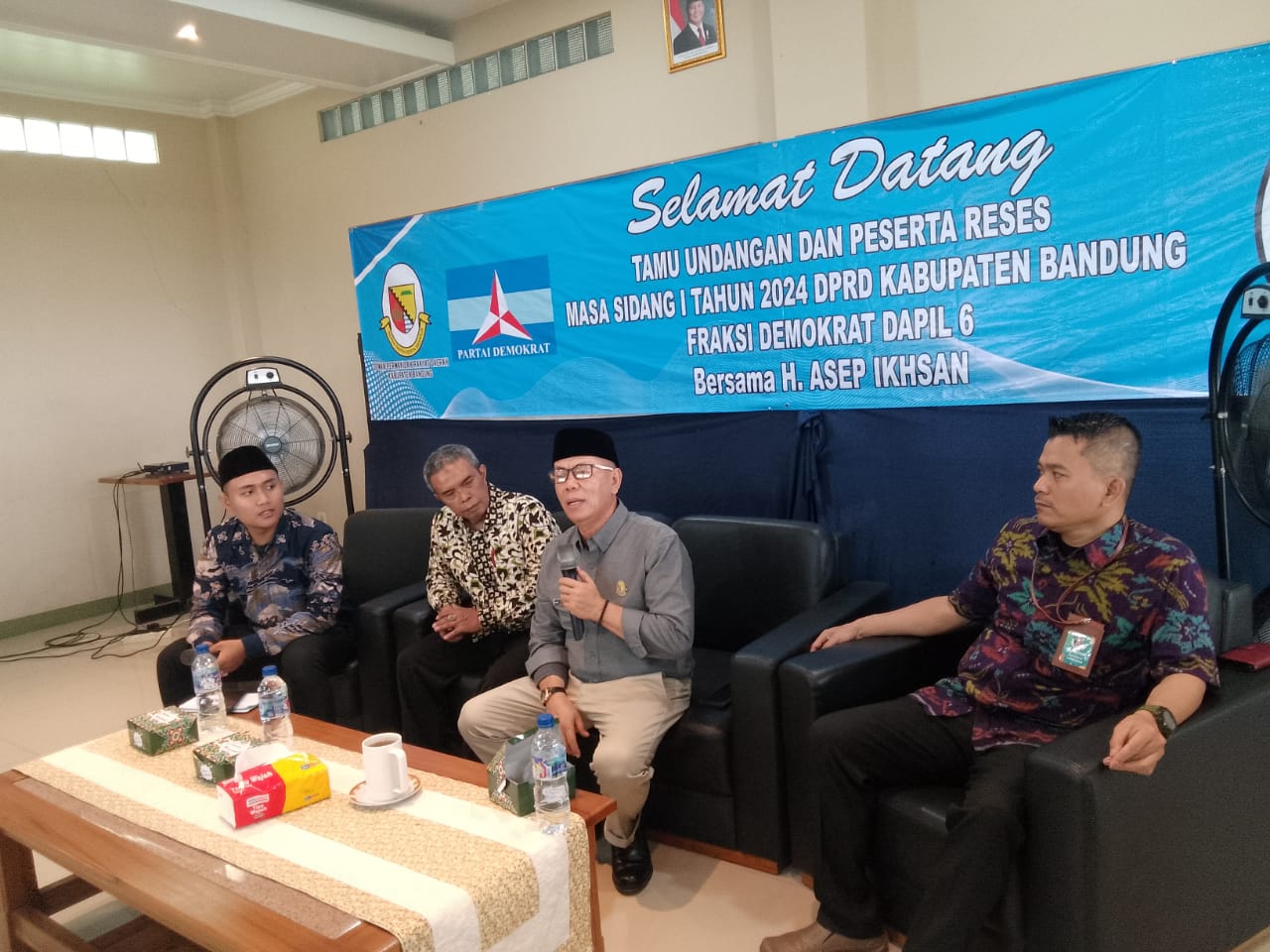 Asep Ikhsan yang menduduki ketua Fraksi Partai Demokrat DPRD kabupaten Bandung Komisi D yang membidangi Pendidikan,Dinas Sosial,Penanggulangan Bencana,ketenaga kerjaan,dalam hal ini dalam masa istirahat sidang 1 tahun 2024 – 2025,ia serap aspirasi masyarakat hususnya di daerah dapil 6 kecamatan Ciparay,pacet,kertasari dan Baleendah,untuk di sampaikan langsung kepada pemerintahan kabupaten Bandung.