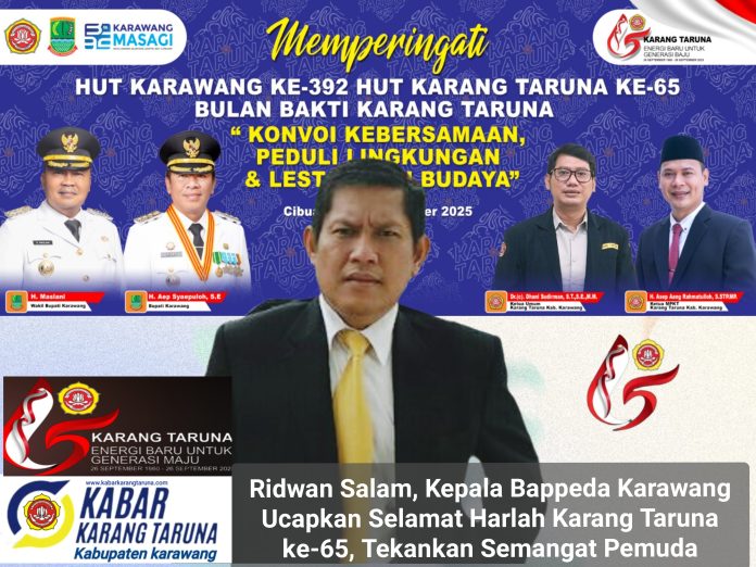 Karawang, Kepala Badan Perencanaan Pembangunan Daerah (Bappeda) Karawang, Ridwan Salam, mengucapkan selamat Hari Lahir (Harlah) Karang Taruna ke-65. Ia menekankan pentingnya semangat pemuda dalam membangun masyarakat dan menciptakan perubahan positif.