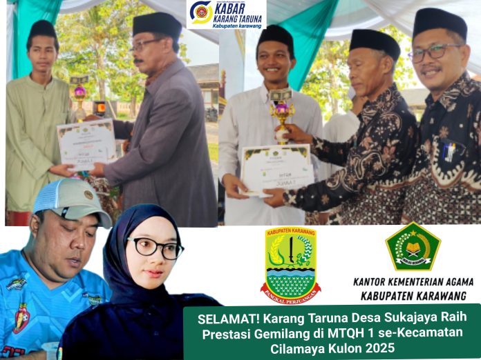 Karawang, Karang Taruna Desa Sukajaya kembali mencatatkan prestasi gemilang dengan meraih juara di Musabaqah Tilawatil Qur’an dan Hadits ke-1 (MTQH 1) se-Kecamatan Cilamaya Kulon 2025. Acara yang mengusung tema “Al-Qur’an sebagai Mata Air Ilmu Pengetahuan dan Solusi Tantangan Global” ini dimeriahkan dengan berbagai perlombaan, termasuk tilawah, murotal, tahmil, dan kaligrafi.