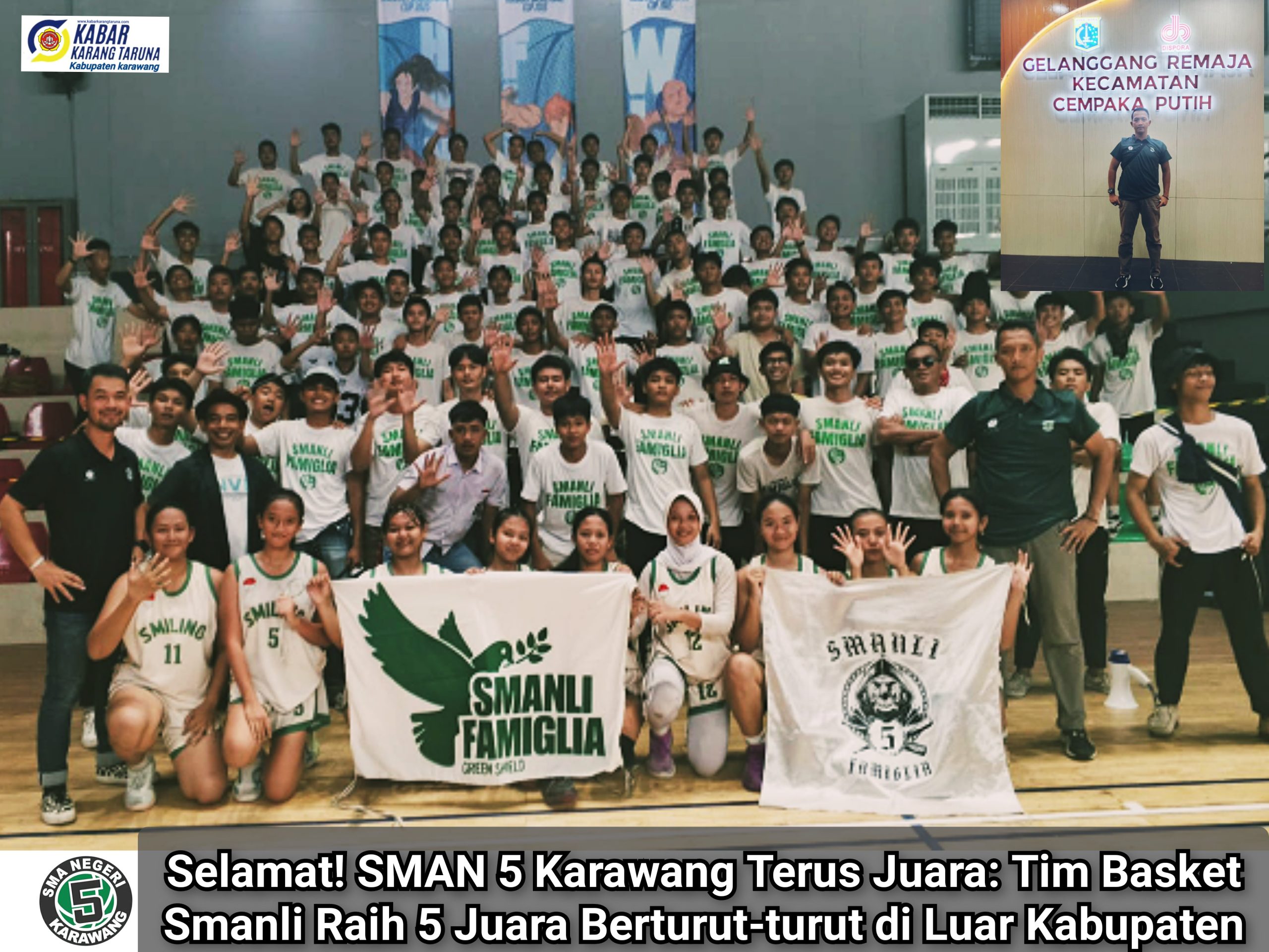 Karawang, Pembina Olahraga SMAN 5 Karawang, Tri Nugroho, S.Pd., Gr., kembali menunjukan raihan prestasi gemilang tim basket Smanli. Tim basket SMAN 5 Karawang berhasil memboyong 5 juara di luar kabupaten berturut-turut, semakin mengukuhkan posisi sekolah sebagai salah satu pembangkit basket muda terbaik di Karawang.