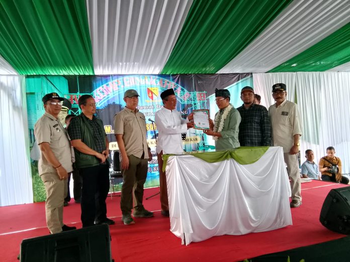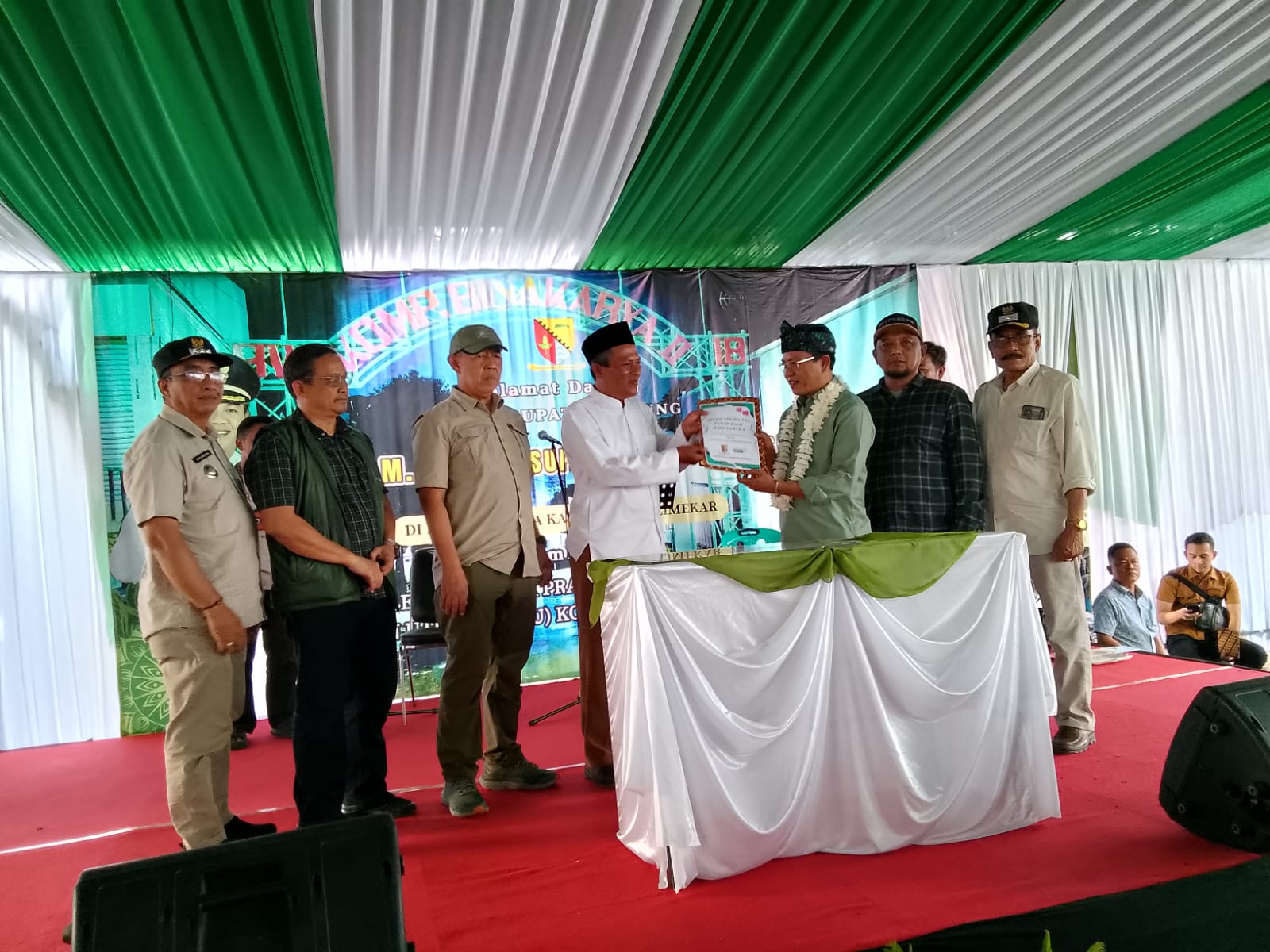 Ketua Tim Adhoc Rw.18 komplek Bina Karya 2 Agus Al Mutahir Ucapkan,” Selamat datang kepada Bupati Bandung Dadang Supriatna,yang telah hadir di tengah – tengah masyarakat komplek Bina Karya 2,desa Cimekar kabupaten Bandung,juga ucapkan banyak terima kasih kami mewakili warga kepada Bah Hilman Faroq anggota DPRD kabupaten Bandung dari PKB, yang telah ikut berjuang sehingga bisa terlaksana acara ini.Dan saya selaku ketua Adhoc ijin melaporkan dari tim Adhoc yang sudah di bentuk beberapa waktu lalu,bahwa kami dari warga Rw 18 komplek Bina Karya 2 desa Cimekar kecamatan Cileunyi kabupaten Bandung,memang sudah lama menantikan acara seperti ini,merupakan suatu kebahagiaan bagi kami,suatu kemenangan besar bagi warga kami,suatu belenggu yang akan di bebaskan hari ini oleh pemimpin kita Bupati Bandung.” Ucap Agus