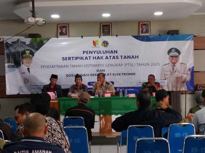 CILEUNYI – BERITASEJABAR.id – Penyuluhan Sertipikat Hak Atas Tanah Pendaftaran Tanah Sistematis Lengkap ( PTSL ) Tahun 2025 Dan Sosialisasi Sertipikat Elektronik.Yang di laksanakan di Aula Desa Cileunyi kulon kecamatan Cileunyi kabupaten Bandung.Selasa 4/2/25.