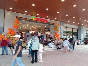 Dan ini terdiri dari 3 lantai,lantai yang pertama Super Market,lantai keduanya ada Fashion dan elektronik,dan lantai ke tiganya ada tempat makan dan mainan anak – anak.Selama pembukaan dari pada hari ini sampai dengan tanggal 9 kami menyediakan produck husus contohnya Ayam Broiler,telur,dengan harga special juga ada minyak goreng yang turun harga.” Tutur Anton